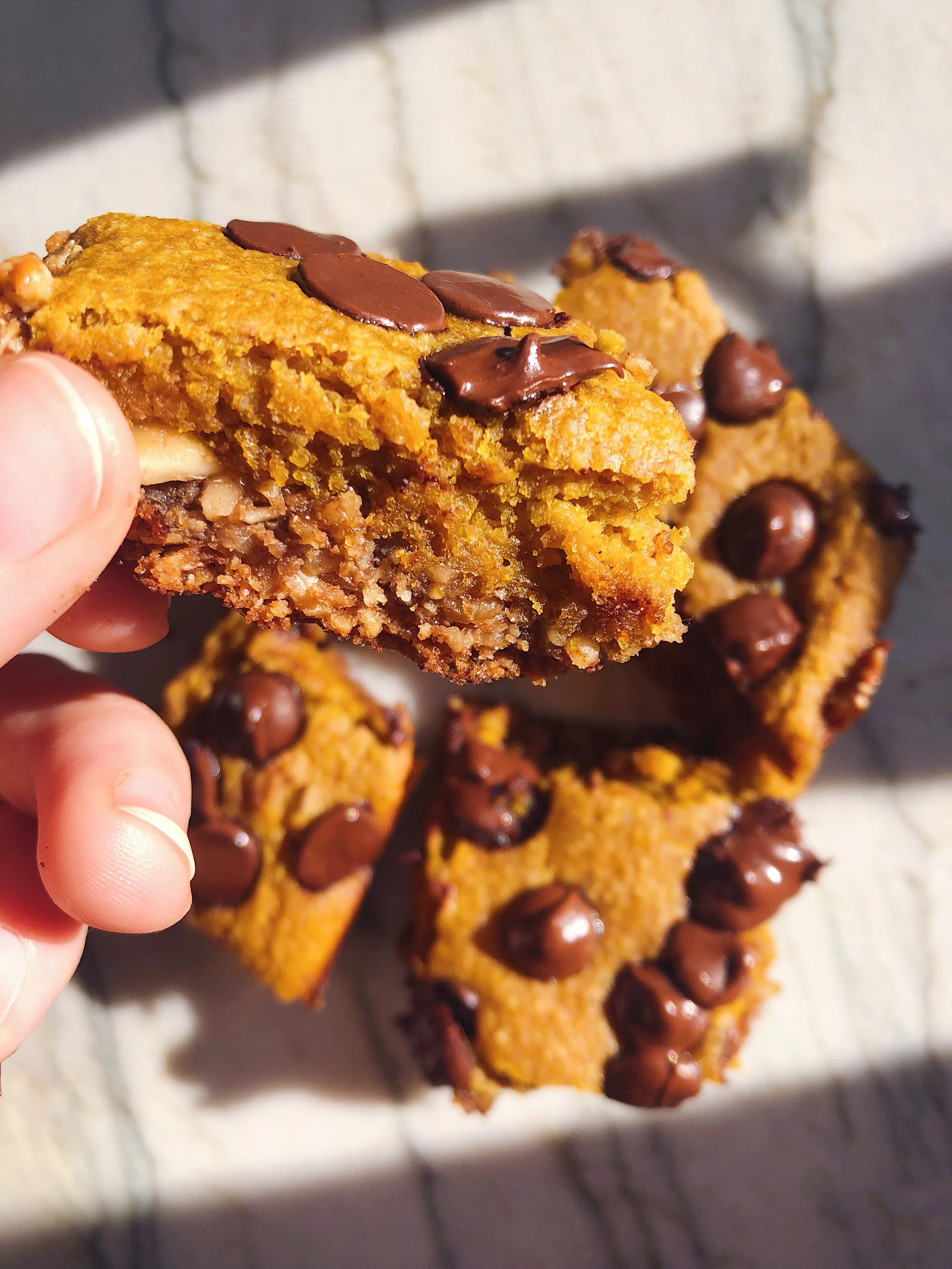 This treat is the perfect dessert, snack, or even addition to your holiday dessert table. It isn’t too sweet yet has flavors flying from all directions. It is dense but it isn’t so thick where you feel like you ate five pieces of apple pie (no shame if you do, I am right there with you because apple pie is too fantastic). It is a partial pumpkin peanut butter chocolate chip cookie with a partial pie crusty bottom- I mean, come on!